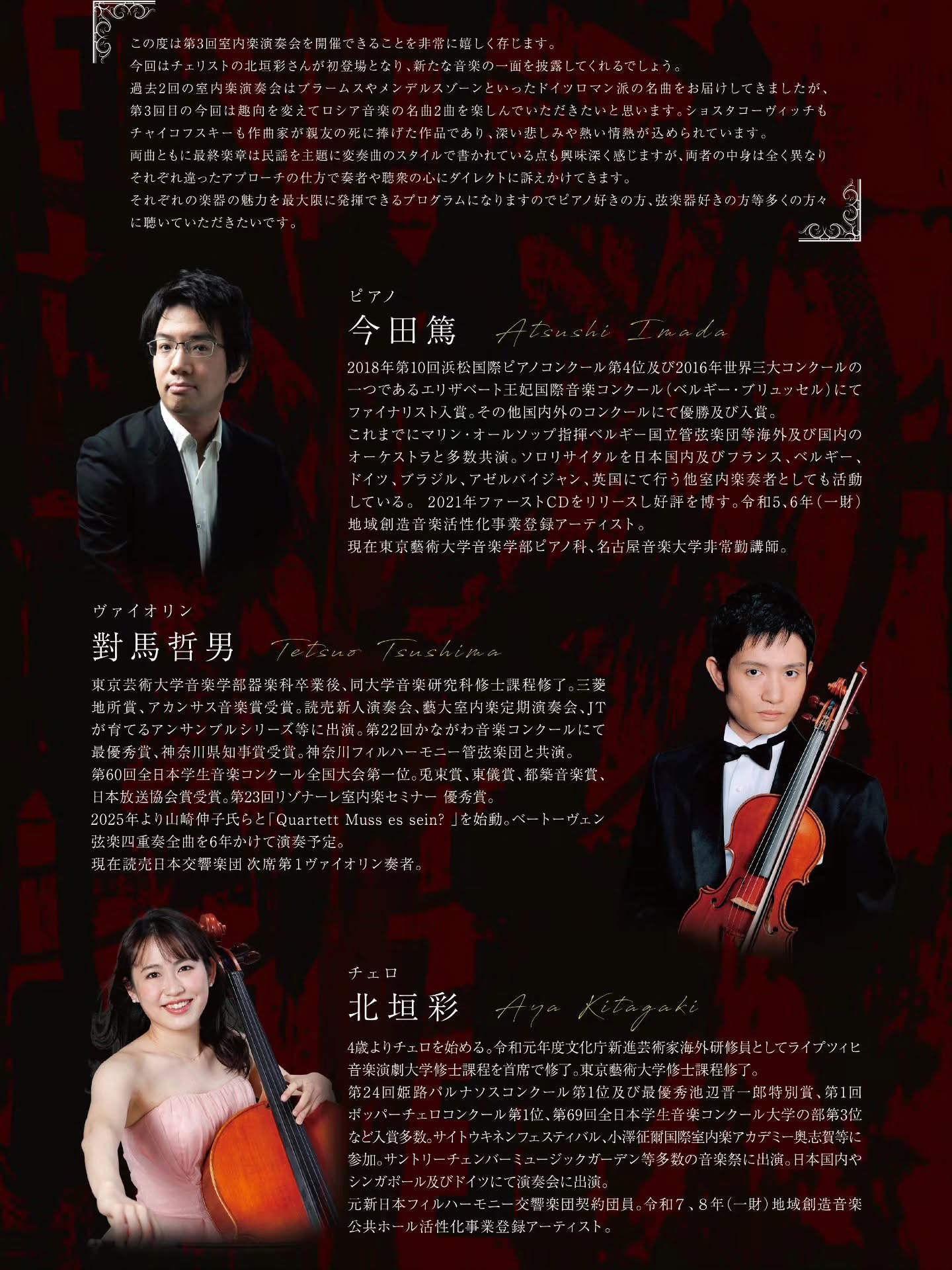 第3回室内楽演奏会 偉大な芸術家の思い出